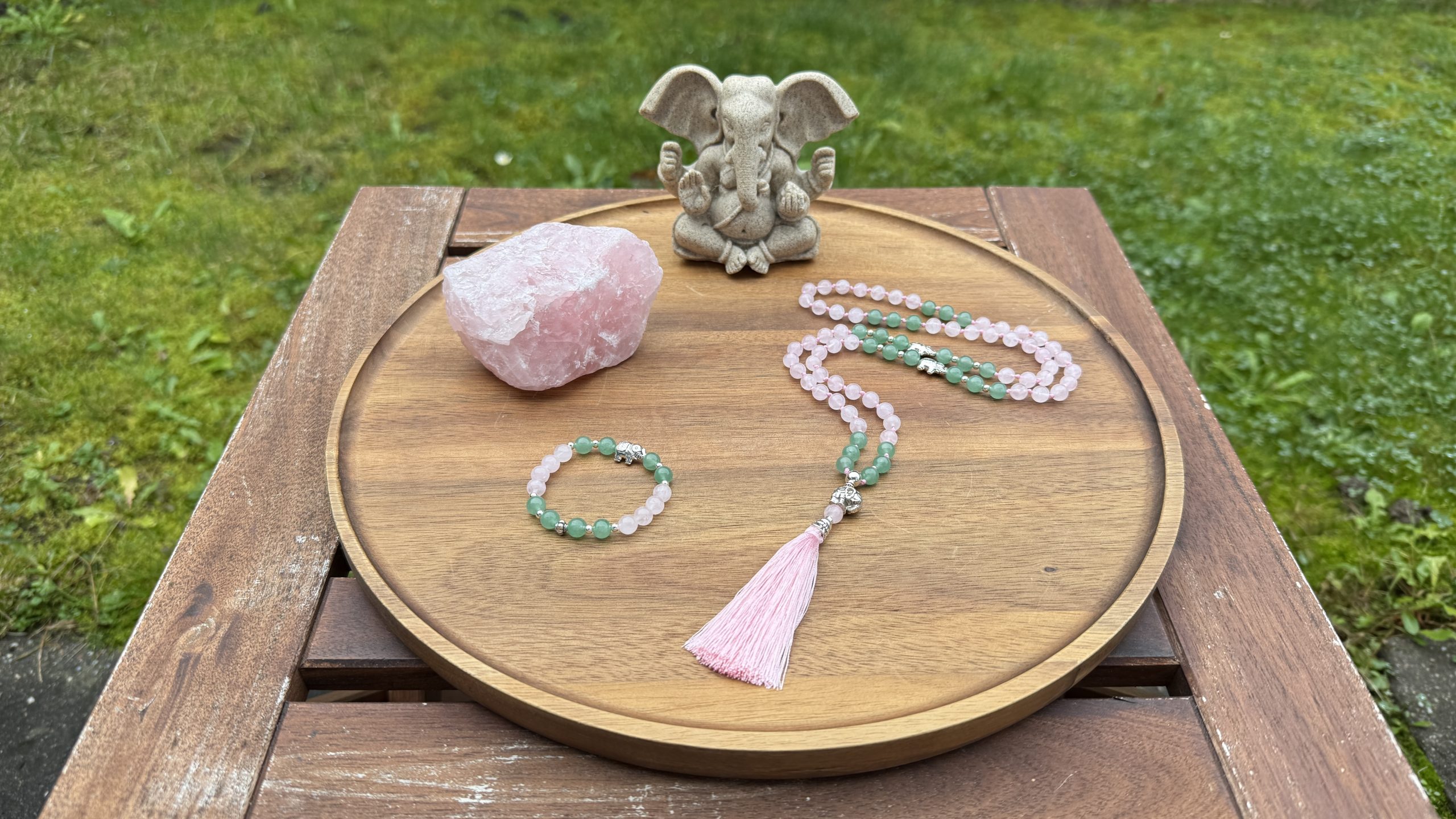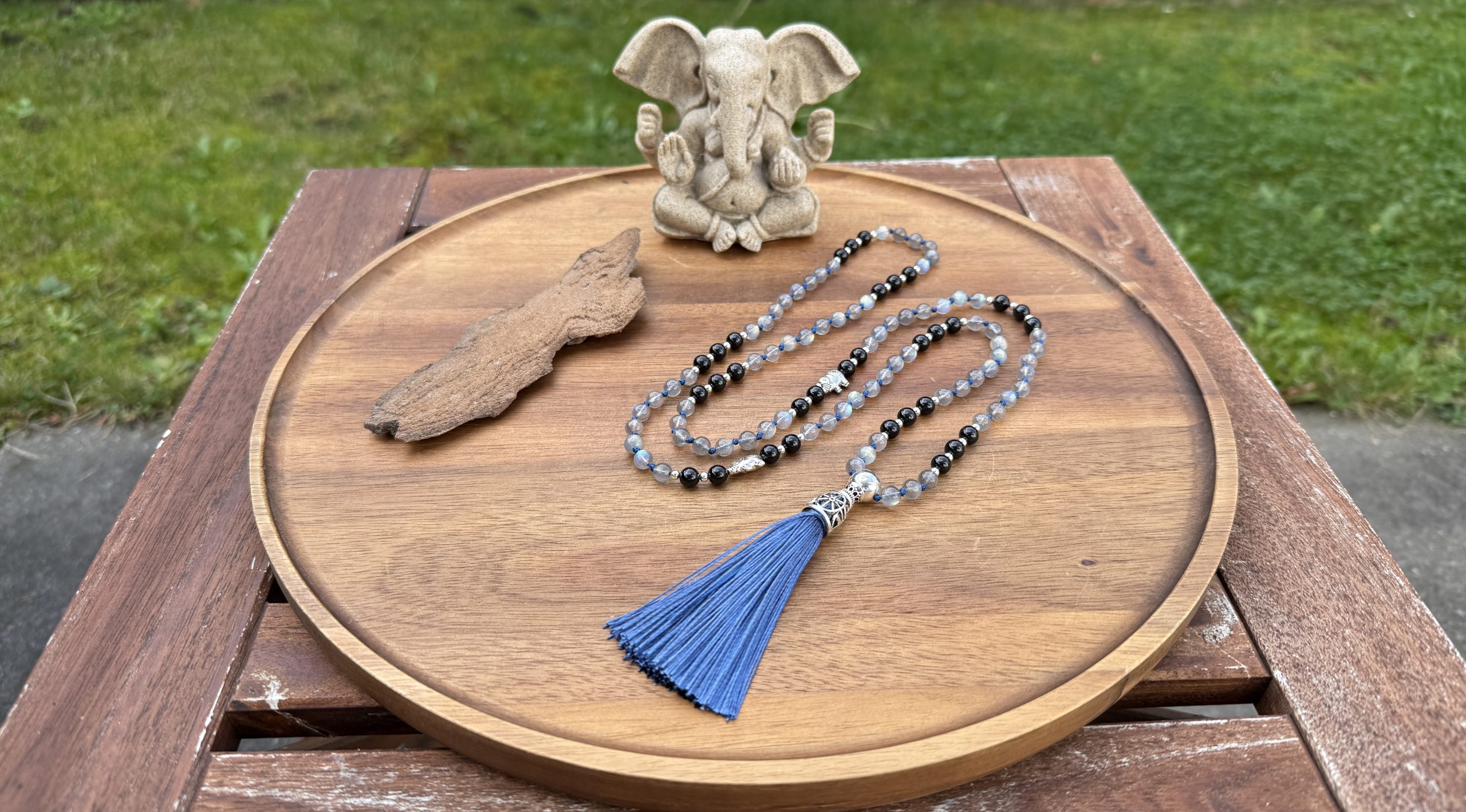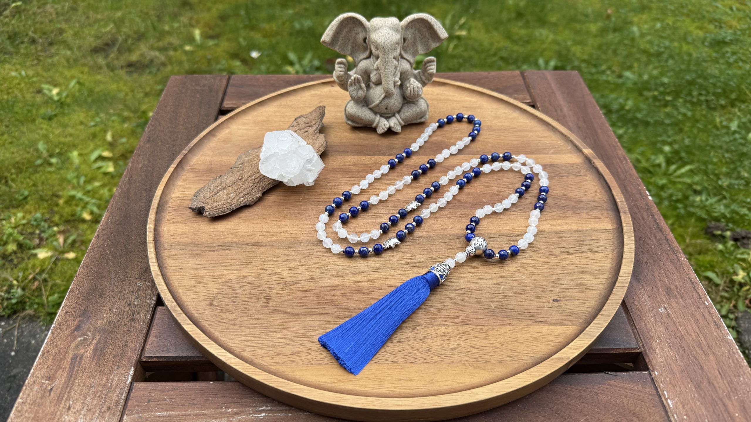 Eine Mala ist eine Gebetskette, die häufig in östlichen Religionen verwendet wird, um die Rezitationen von heiligen Klängen oder Beschwörungen zu zählen, und ich stelle sie schon seit einiger Zeit her. Viel mehr als nur ein schönes Schmuckstück ist eine Mala auch ein kraftvolles und symbolisches Werkzeug, um die Meditation zu vertiefen und zu intensivieren. Es wird gesagt, dass jeder Edelstein unterschiedliche Eigenschaften, Energien und Bedeutungen hat. Wenn du ihre Energie mit deinen Gebeten, Hoffnungen und Träumen verbindest, wird die Mala letztendlich zu dem, was der Träger von ihr erwartet.
